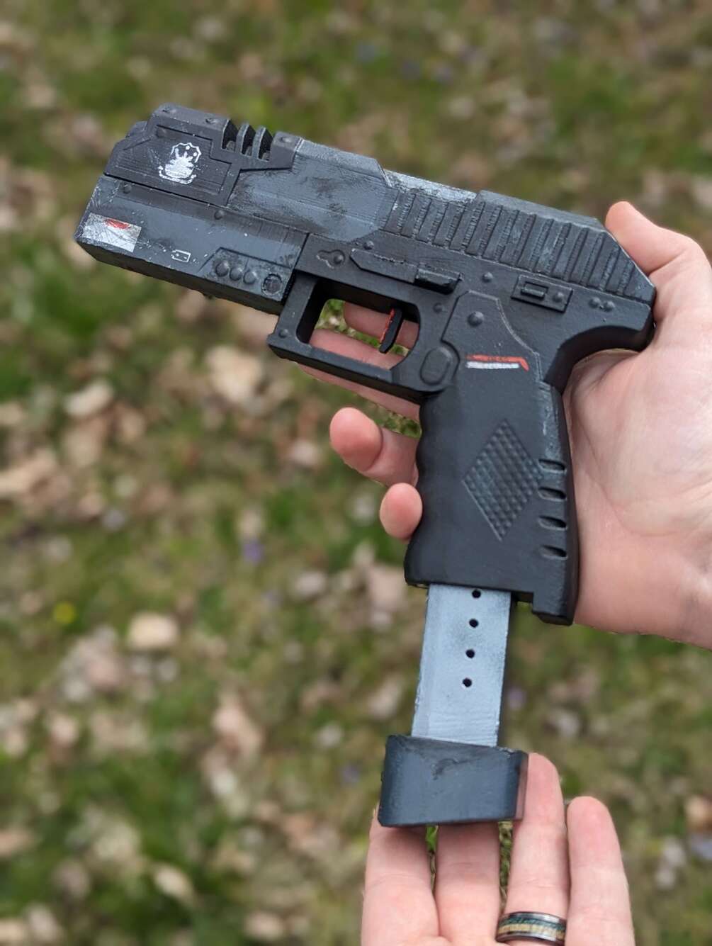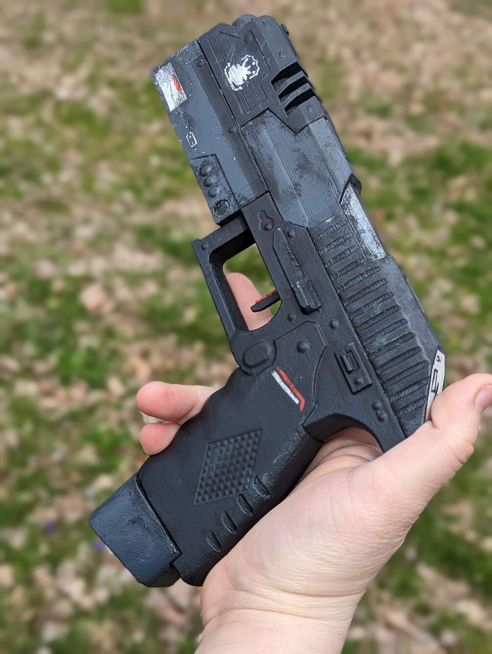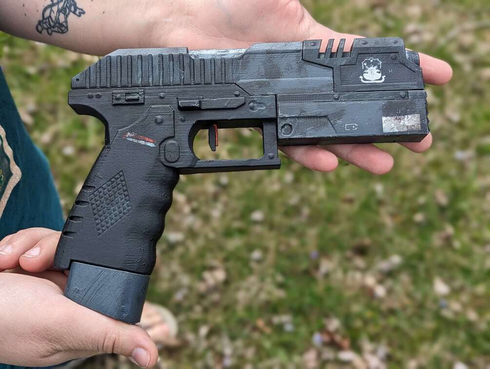For purchase here is a handmade and hand-painted pistol from Titanfall 2! This prop is 3d printed finished and painted by yours truly! This prop is available in multiple variations to fit your every need, and a parts kit if you are looking to create your custom one but don't have a 3d Printer! This replica is as close to accurate to the real deal as possible, and the size should fit just right! Each is made to order, and they come out as quick as possible!